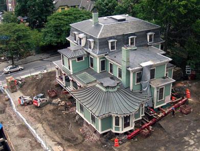 Construction crews have been working during the last few months to prepare the new site, as well as the estimated 300-ton house, for the anticipated three- or four-day move. Between 8 and 9 a.m. Tuesday, July 31, crews will begin to pull the house off of its existing foundations, and carry it into Olive Street. Simultaneously, crews will start the 90-degree rotation, which will correctly orient it for placement on its new foundations. For Tuesday only, a viewing area will be set up for pedestrians on the south side of Angell Street. On Wednesday and Thursday, Aug. 1-2, the house will begin its journey approximately 450 feet west along Olive Street to its new location at the corner of Brown and Angell streets. Weather and schedule permitting, by Friday, Aug. 3, the structure will be lowered onto its new foundation and the second phase of renovations and restoration will begin.