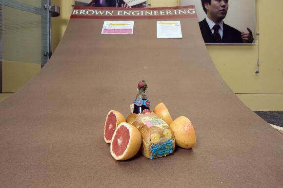 The competition, organized by students in Brown’s Division of Engineering, will test participants’ ability to build a vehicle out of everyday foods ranging from carrots to cookies. About a dozen teams will then “race” their vehicles to determine which travels the farthest – and learn which aren’t road-worthy. A panel of judges that includes Brown engineering faculty, administrators, and the university’s executive chef will declare a winner based on a vehicle’s appearance and the distance it travels.