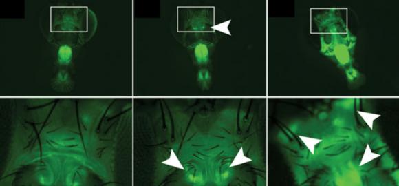 Reenan said he is confident that the ADAR reporter could be useful in more organisms than the fruit fly. The idea of creating the reporter grew out of his lab’s studies of comparative genomics in a number of species. ADAR, meanwhile, is found in both invertebrates and vertebrates. In fact, in the paper the researchers describe testing the flexibility of their engineering by inserting into their engineered jellyfish gene — destined as it was for a fruit fly — the splicing intron of a moth.