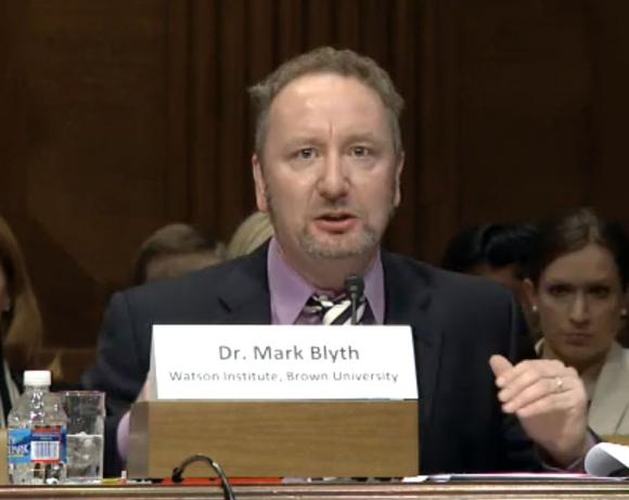 PROVIDENCE, R.I. [Brown University] — Testifying at a hearing of the U.S. Senate’s Committee on the Budget titled “The Better Way: Benefits of a Balanced Budget,” Mark Blyth, professor of international political economy at Brown University’s Watson Institute for International Studies, referenced many of the ideas in his 2013 book Austerity: The History of a Dangerous Idea (Oxford University Press), which looks at the negative effects cost-cutting measures have had on economies over time, including most recently in several European countries like Greece and Spain.