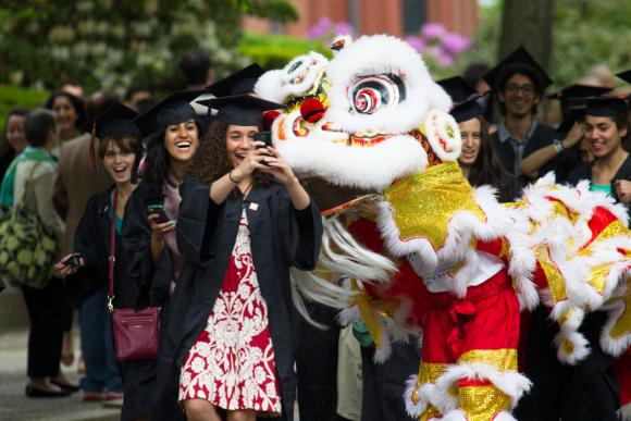 The Baccalaureate Service, with roots in medieval academic tradition, honors the achievements of the candidates for the bachelor’s (“bacca”) degree by presenting them with the laurels (“lauri”) of oration. Brown’s baccalaureate tradition derives from the wide range of religious, ethnic, geographic, linguistic, and musical traditions present within the campus community. The ceremony includes rituals, readings, and prayers from Islam, Judaism, Hinduism, Christianity, Buddhism, and animist traditions, as well as choral and instrumental music, the Chinese lion dance, poetry, dance, and Taiko and Senegalese drumming.