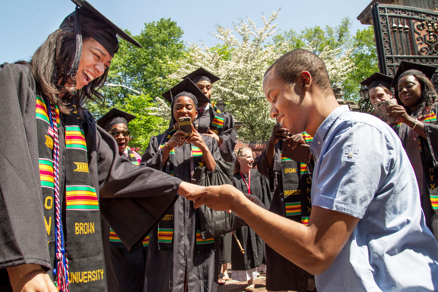 There could even have been wedding bells, in fact, as just outside the Van Wickle Gates new graduate Parielle Lacy accepted the proposal of Colby Davis who had graduated the year before.