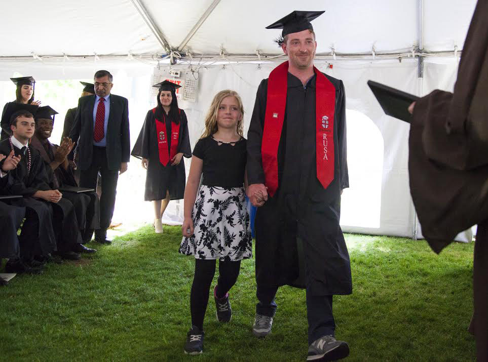 Matthew Ricci, a Navy veteran who began his Brown studies at 27, received his bachelor’s degree in political science with daughter Gretchen, 9, at his side.