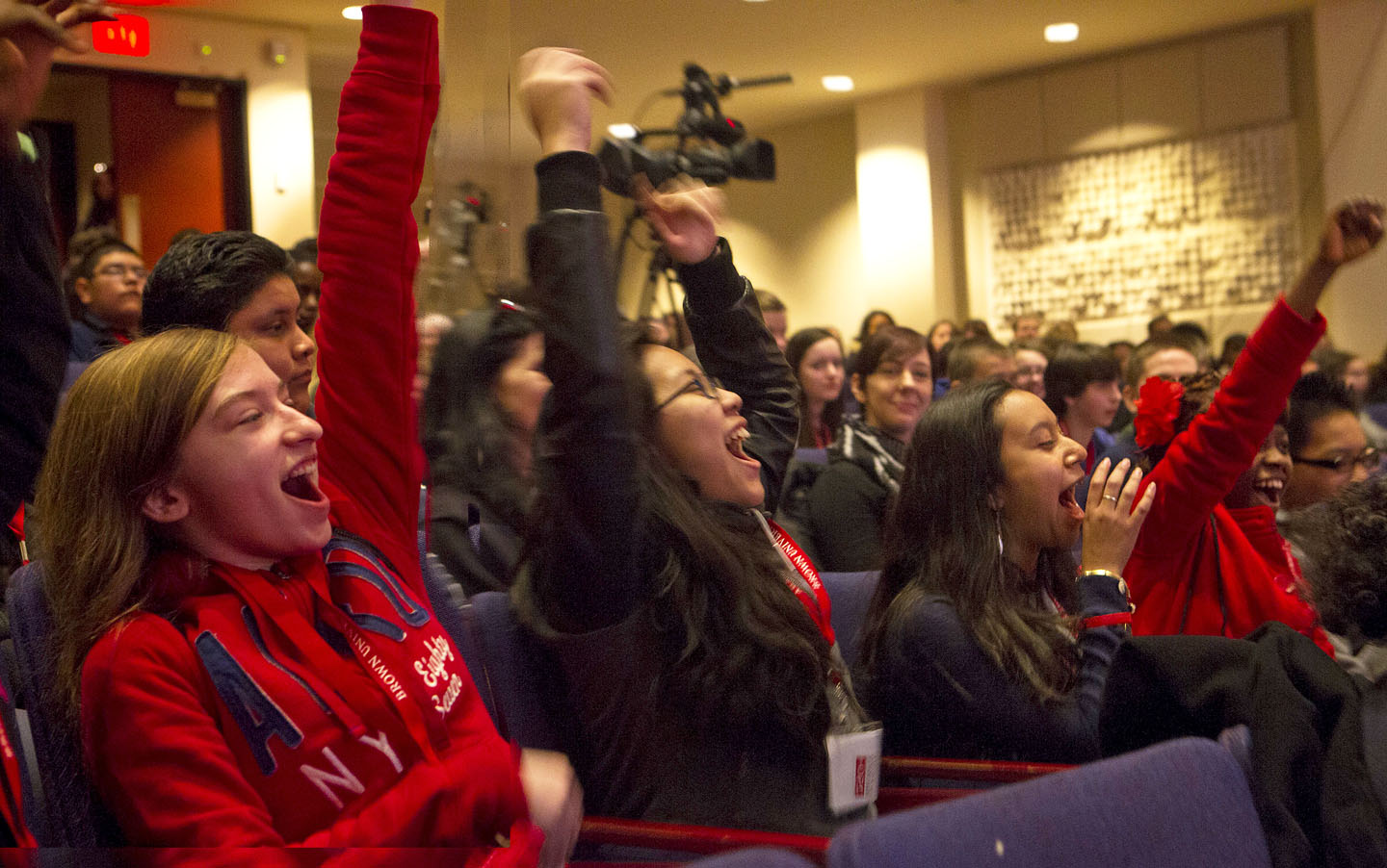 Students from more than 30 middle schools visited Brown for a Day of Discovery, part of the 250th anniversary kickoff. “Best field trip ever!” one of them tweeted. Photo: Mike Cohea/Brown University